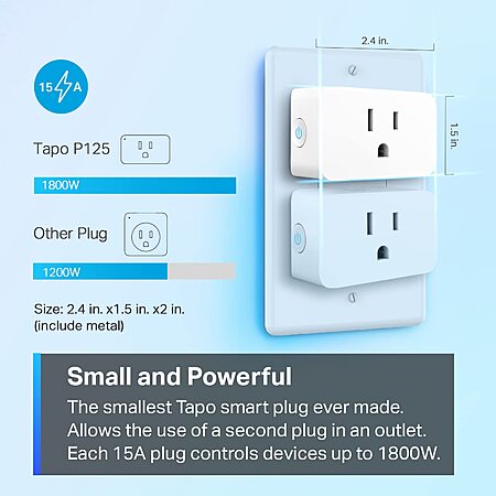 Model: TP-Link Tapo Apple HomeKit Smart Plug Mini, Compact Design, 15A/1800W Max, Super Easy Setup, Works with Siri, Alexa & Google Home, UL Certified, 2.4G Wi-Fi Only, White, Tapo P125(2-Pack)