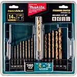 Makita B-65399 Impact Gold 14 Pc. Titanium Coating Drill Bit Set, 1/4 In. Hex Shank $11 + Free Shipping w/ Prime or on $35+