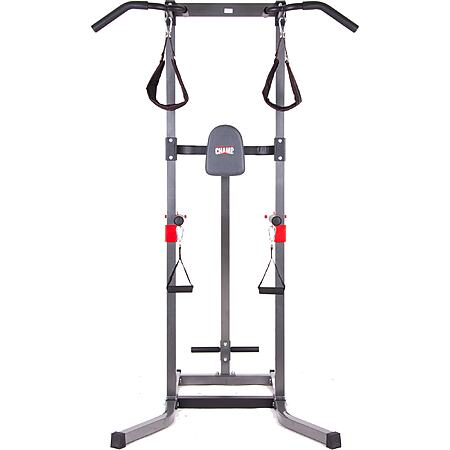Model: Body Flex Sports Body Champ Fitness Multi Function Power Tower - Grey, 5 Workout Stations, Adjustable Dip Handles, Multiple Grips in Gray | VKR2078