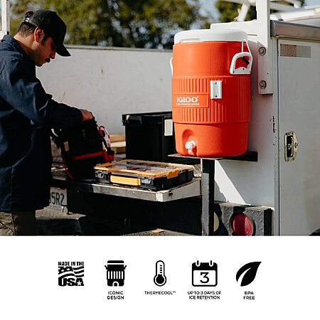 5-Gallon Igloo Portable Beverage Dispenser Cooler w/ Flat Seat Lid (Orange) $25 + Free Shipping w/ Prime or on $35+