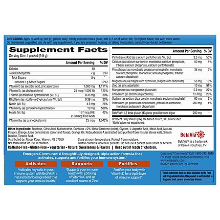 30-count Super Orange Emergen-C Immune+ Triple Action Immune Support Powder, BetaVia (R), 1000mg – w S&S coupon YMMV $7.94