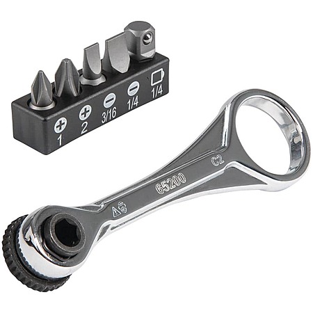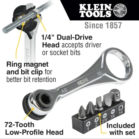 Klein Tools 1/4" Drive Electrician's Mini Ratchet w/ Screwdriver Bits & Adapter