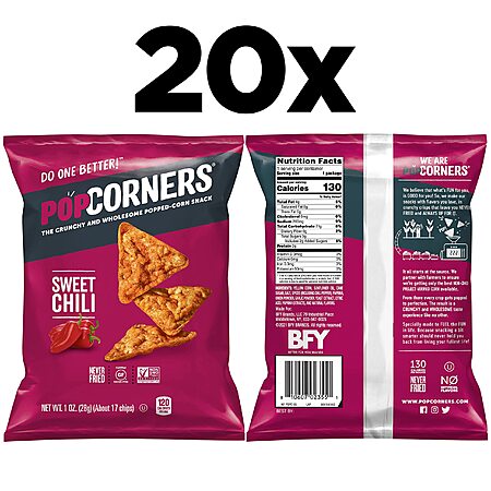 20 Pack PopCorners Popped Corn Snacks, Sweet Chili Gluten Free $12.54