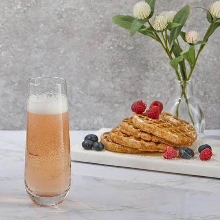 • BRUNCH. MIMOSA. REPEAT: Fill your cup! The JoyJolt Milo Set of 8 Stemless Glasses looks beautiful as a Mimosa Glass, and Prosecco Glasses, flowing with Cristal or Rose Sparkling Wine Glasses. If it's worth toasting with, then it belongs in a cute bar glass set that adores the sound of a 'clink'!