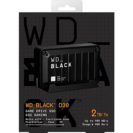 WD - D30 2TB Game Drive for PlayStation and Xbox External USB Type-C Portable SSD - Black $139.99