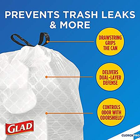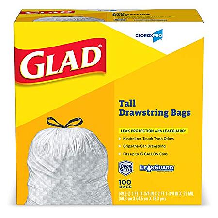 About this Item:- 13 GALLON PLASTIC TRASH BAGS: These Tall Kitchen Drawstring Trash Bags from CloroxPro Glad are designed with stretchable strength to handle the heaviest loads without tearing; packaging may vary