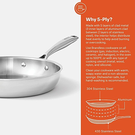Brandless 3-Piece Fabulous Fryers 5-Ply Stainless Steel Frying Pan Set (12", 10", 8")
