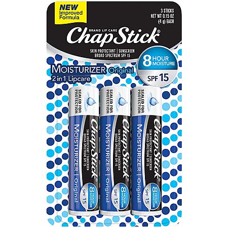 3-Count 0.15-Oz ChapStick Lip Balm: Classic Original or Cherry