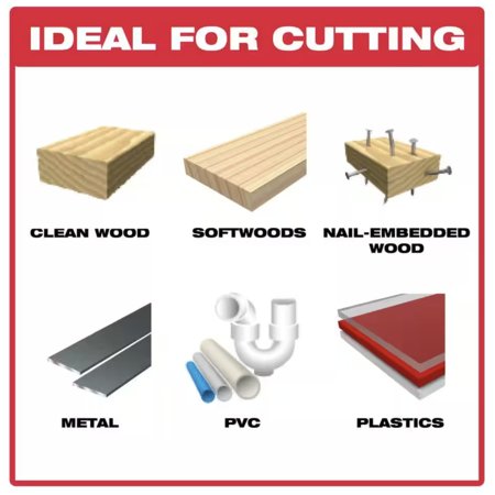 • Cuts clean, soft & nail-embedded wood, metal, PVC & plastics