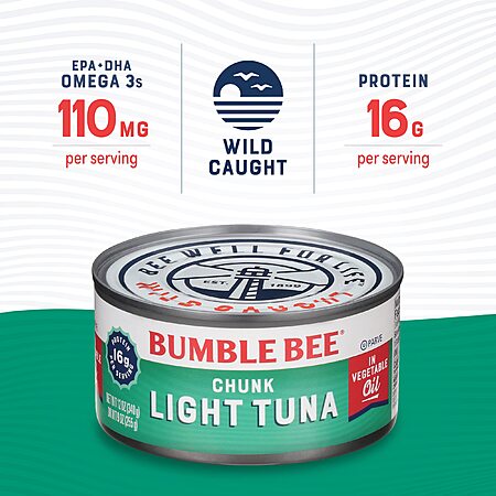 - CONVENIENT and SATISFYING SNACK: Enjoy a can of Bumble Bee Chunk Light Tuna in Oil as a great-tasting, protein-packed seafood snack, for a healthy lunch or as part of any other meal