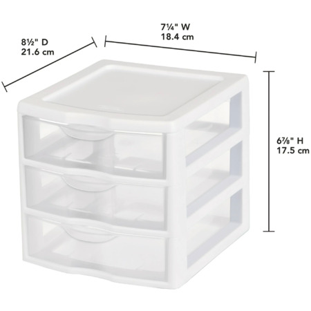 Model: Sterilite 3-Drawer Plastic Desktop Storage Unit (White)
