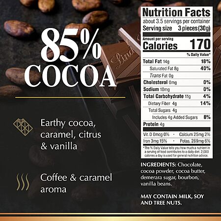 Lindt EXCELLENCE 85% Cocoa Dark Chocolate Bar, Chocolate Candy, 3.5 oz. (12 Pack) $25.39