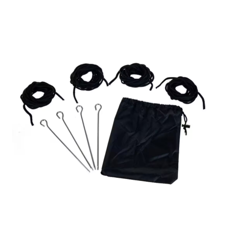 i saw someone use a screw in ground anchor and a ratchet strap on a camping page the other day.