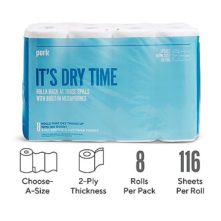 8-Rolls 2-Ply Perk Choose-A-Size Kitchen Paper Towels, 116 Sheets/Roll for