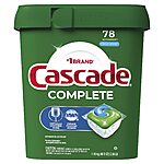 78-Count Cascade Complete Dishwasher Detergent Pods (Fresh Scent) on sale for $18.10 - $4.16 off when you 'clip' the coupon on product page - 5% off when you check out via Subscribe & Save =