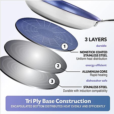 GRANITESTONE Stainless Steel Nonstick 12” Frying Pan, Tri-Ply Base, Stainless Steel Fry Pan with Nonstick Mineral Coating, 100% PFOA Free, Cool Touch Handles, Induction, - $24.95