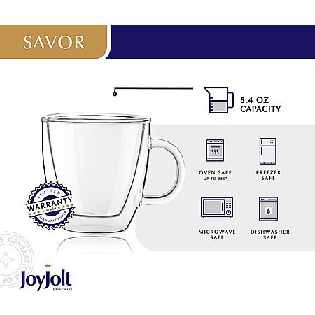 2-Count JoyJolt Savor 13.5-Oz Double Wall Insulated Coffee Mugs $16.95, 2-Count Espresso Mugs $14.40 + Free Shipping w/ Prime or on $35+