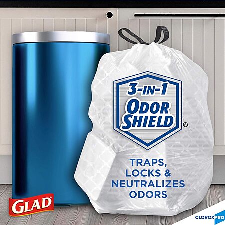 Limited-time deal: Glad ForceFlex Tall Kitchen Drawstring Trash Bags, Clorox 13 Gallon Trash Bags for Tall Trash Can, Industrial Cleaning, 100 Count (Packaging May Vary) - $14.59
