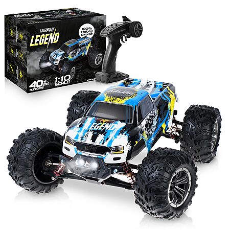 LAEGENDARY 1:10 Scale 4x4 Off-Road RC Truck - Hobby Grade Brushed Motor RC Car with 2 Batteries, Waterproof Fast Remote Control Car for Adults - $48.99