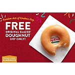 Feb. 17, Krispy Kreme is celebrating Random Acts of Kindness Day by giving out free doughnuts. Customers can score one free Original Glazed Doughnut by visiting a participating store or ordering online for pickup - no purchase necessary.