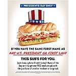 Firehouse Subs: Same Name as President or First Lady, Buy Med/Large Sub, Get Med Sub