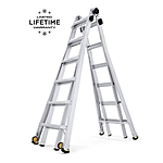 Lighter, stronger, easier - the newly designed Gorilla Ladders 26 ft. Reach MPXW Aluminum Multi-Position ladder with wheels combines versatility, safety and strength. With a 375 lb. weight capacity and telescoping adjustable heights, this ladder can be used as an extension ladder, double-sided twin step ladder, 90 ladder and a stairway step ladder. Easily adjust the height from all sides with 1-hand using the speed locks. The extra-large, heavy-duty hinges give you improved strength with less flex and sway for safer climbing, plus the built-in wheels allow the ladder to be easily transported. The innovative rail design makes this ladder lighter weight yet stronger than comparable models. This Gorilla Ladders 26 ft. Reach MPXW Multi-Position Ladder with wheels is the next generation of safe, strong, innovative and versatile climbing products that is perfect for all your project needs.