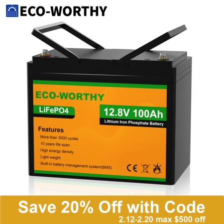 Eco-Worthy-US via eBay has select Eco-Worthy LiFePO4 Lithium Iron Phosphate Multi-Purpose Batteries on sale for the prices noted below when you apply Extra 20% Off coupon code PRESIDENT20 at checkout. Shipping is free.