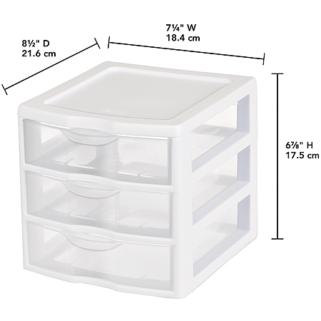 Model: Sterilite 3-Drawer Plastic Desktop Storage Unit (White)