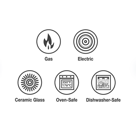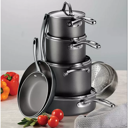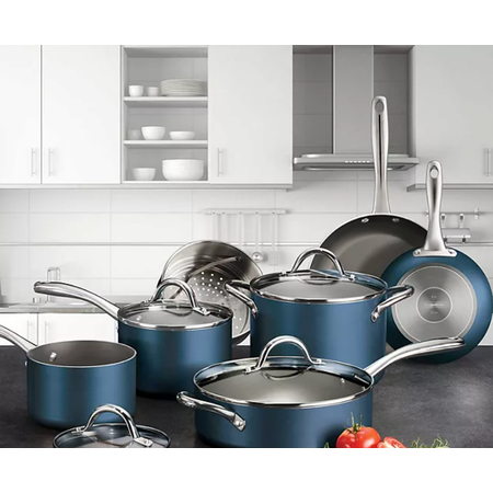 Product Description: | Tramontina's 11-Piece Aluminum Nonstick Cookware Set offers durable pieces versatile pots and pans for cooking meals of every size. Tempered glass lids allow you to monitor your cooking progress, and ergonomically designed cast stainless-steel handles are riveted for extra support when handling cookware. This scratch-resistant, nonstick cookware is compatible with gas, electric and ceramic glass cooktops and can be used in the oven up to 350°F.
