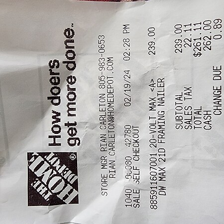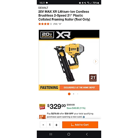 Maybe we have a different nail gun? I use the Dewalt 20v framing nailer ( https://www.homedepot.com/p/DEWAL.../307658305 [homedepot.com])