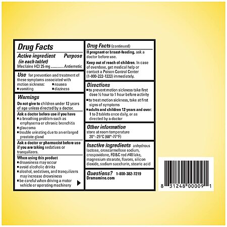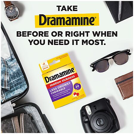 2-Pack 12-Count Dramamine Less Drowsy Motion Sickness Relief Chewable Tablets (Raspberry Cream) $6.15 w/ S&S + Free Shipping w/ Prime or on $35+