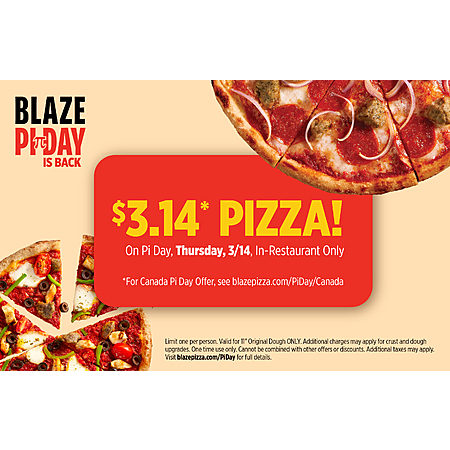 Pi Day Pizza Deals: Blaze Pizza in-Restaurant: Any 11" Pizza