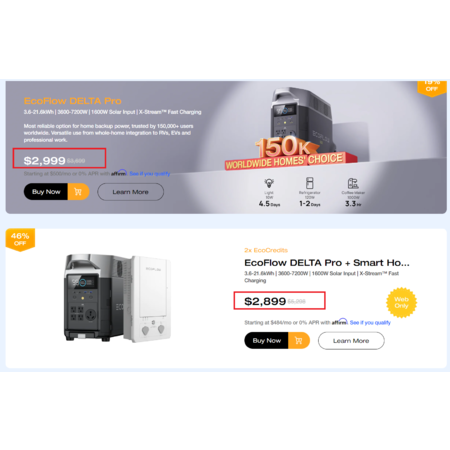 One thing stand out is the Delta Pro + Smart home panel is at 46% off. This combo is $2899 before coupon or $2725 after coupon code EF6PCTOFF