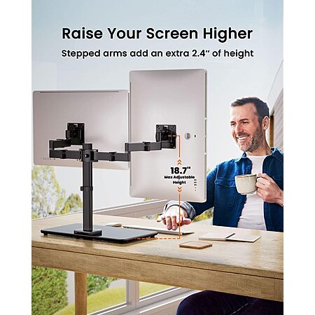 Ergear Freestanding Dual Monitor Stand w/ Tempered Glass Base (Mounts for 17 to 32", upto 22 lbs per Arm) on sale for for $49.98 - $24.99 when you 'clip' 50% Off Coupon on product page - $5 off w/ 10% w/ promo code