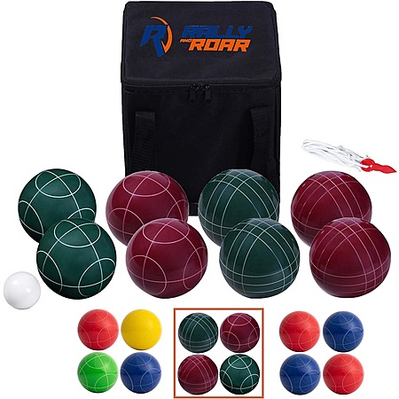 Rally and Roar Bocce Ball Game Set - 8 Balls, Pallino, Carry Case, Measuring Rope (90mm Red/Green) for