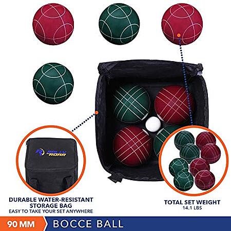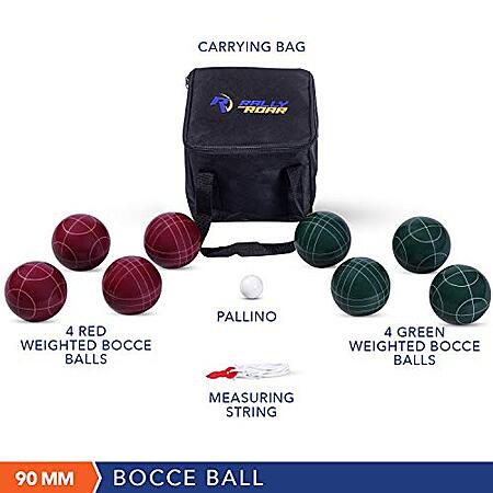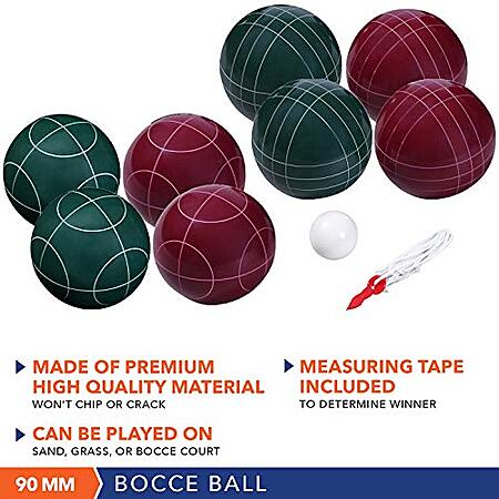 About this Item:- HOURS OF FRIENDLY COMPETITION: The game of Bocce ball has been a classic favorite among sports enthusiasts for years. This complete bocce kit with 8 balls, a pallino, a measuring tape, and carrying case is all you need to get the good times rolling.