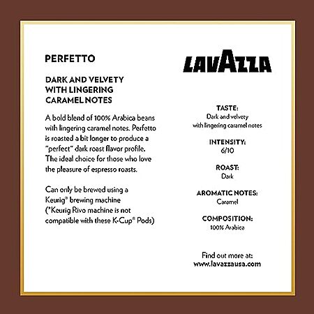 Model: Lavazza Perfetto Single-Serve Coffee K-Cup Pods for Keurig Brewer , Dark and Velvety Roast, 10-Count Boxes (Pack of 6)