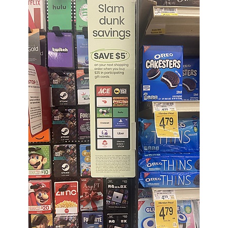 Gift Card Deal: Get $5 coupon wyb $25 Select Gift Cards in-store Albertsons/Safeway/Vons (YMMV)
