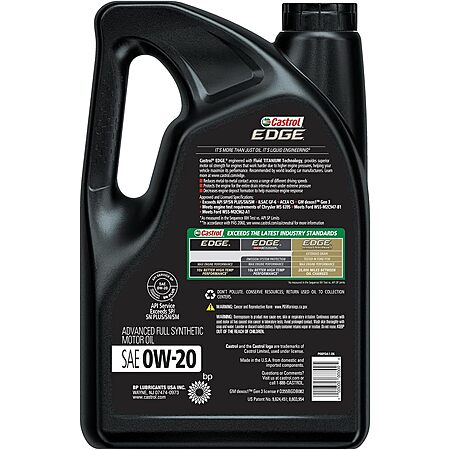Castrol Edge 0W-20 Advanced Full Synthetic Motor Oil, 5 Quarts $24.79