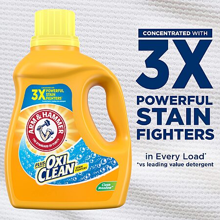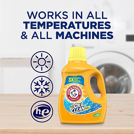 • With trusted ARM & HAMMER Baking Soda plus OxiClean stain fighters, this HE laundry detergent is formulated to deeply clean clothes and deliver lasting freshness