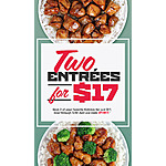Buy 2 entrees for $17 with a Pei Wei coupon valid through March 6. Show the coupon below to your cashier for the deal, or for online orders, use promo code 2FOR17 at checkout.