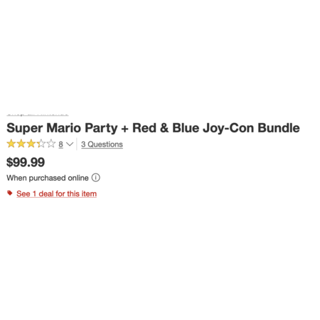 However, Super Mario Party is usually one of the games that gets its price slashed to $30 on March 10th as part of Mario Day sales, and used copies of the game go for about $30 on eBay, so the $40 "added value" in the description is more like $30 added value with this timing.