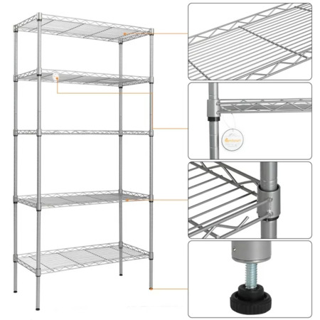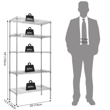 Model: Ktaxon 5-Tier Wire Shelving Unit, Steel Storage Rack for Garage Office Kitchen Silver, 30" W x 14" D x 60" H