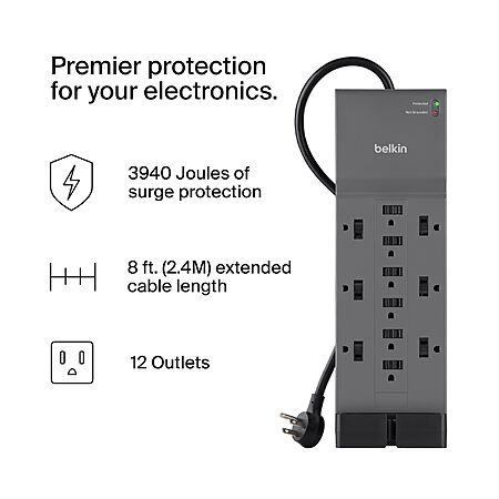 12-Outlet Belkin 3940 Joules Surge Protector Power Strip w/ 8' Cable