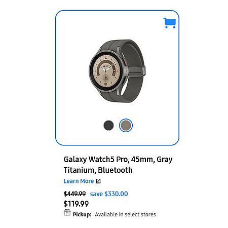 • Galaxy Watch5 Pro, 45mm, Black or Gray Titanium, Bluetooth $119.99