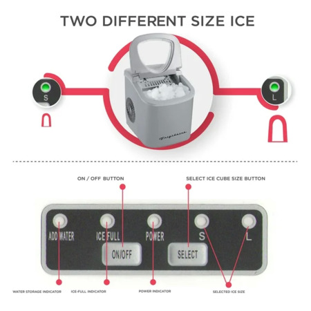 • Ample water storage: with a substantial 1.2-quart water reservoir capacity, this ice maker maximizes ice production before requiring a refill.