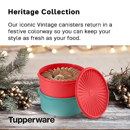 7.6 cup Tupperware Heritage Collection Cookie Canister - Vintage Holiday Green or Red, Dishwasher Safe, BPA Free $9.99 + Free Shipping w/ Prime or on $35+