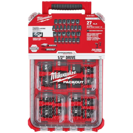 Milwaukee Shockwave 1/2 in. Drive Metric / SAE Packout Standard Impact Socket Set 27-piece Home Depot Hack $80.44