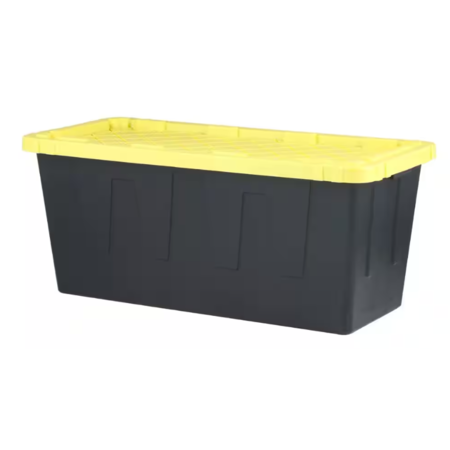 Model: 55 Gal. Tough Storage Tote in Black with Yellow Lid