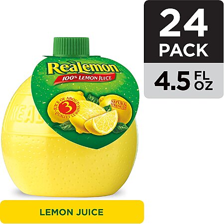 Amazon [amazon.com] has 24-Pack 4.5-Oz ReaLemon 100 Percent Lemon Juice on sale for $7.75. Shipping is free w/ Prime or on $35+.